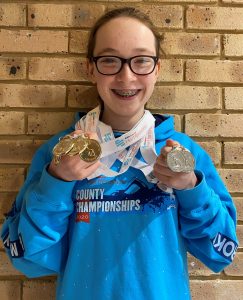 With older swimmers and top BSSC Gold medallist after weekends 1&2 Kaia Phillips away at a meet in Sheffield, the responsibility was left with the younger BSSC swimmers for the final weekend of the Hertfordshire County Championships. All swimmers stepped up and performed admirably, securing eight more medals and ensuring that BSSC finished fourth in the individual medals table behind the large clubs of Hatfield, Watford and City of St Albans (third if we could have counted new recruit Callum’s medals as ours!).